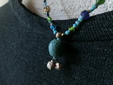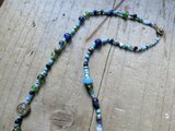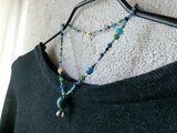 チェーン部分はアジアのシードビーズやアメリカのデッドストック、ベネチアのシードビーズ小さいものは4.5種類にアジアの少数民族の若草色、濃いめグリーン、瑠璃色のみかん玉や