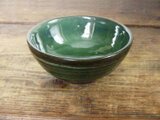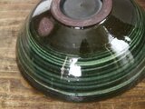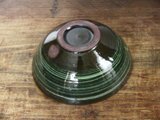 鉢の内側に化粧泥を掛けて外側に刷毛目を施してから織部釉を掛けて焼成しています。