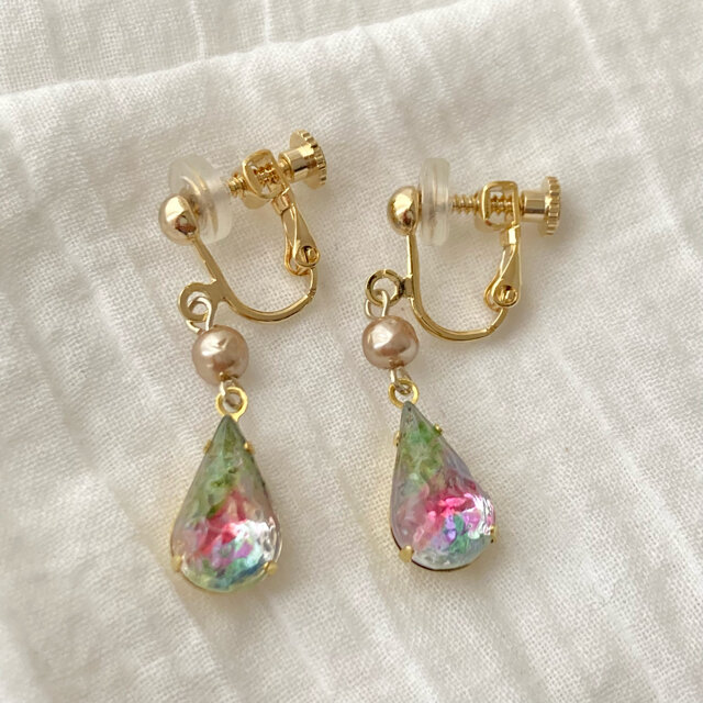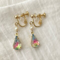 イヤリング金具は調節可能なネジバネ式です。耳が痛くなりにくいように、樹脂カバーをおつけします。