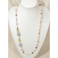 本真珠(淡水パール)、貝パーツ(茶蝶)、メノウ、本水晶、SV925のロングネックレス(マザーオブパール、セミバロック)