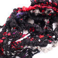 素材:羊毛85%、シルク10%、キッドモヘア5%、オーガンジー、スワロフスキ、天然石(珊瑚、ヘマタイト)、アクリルビーズ、スパンコール、ラメ