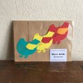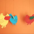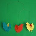 カラフルなとりが3匹ならんで、踊っているようなモビールです。