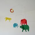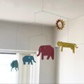 風がふくと、ゆっくりと動く。モビールには、集まる風と光で動く姿はずっと眺めていたくなるような魅力があります。そこに草原を走る動物を重ね、子供たちに動物に興味を持ってもらいたいという思いで製作しました。子供部屋におすすめ!