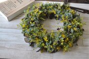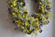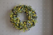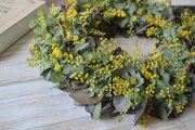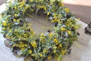 シンプルにミモザとユーカリ、ヒオウギの実を合わせたwreath。