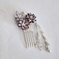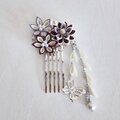 3つの小花が並ぶコームには、蝶のチャームが付いた下がりが揺れるデザイン。
