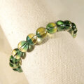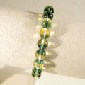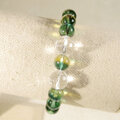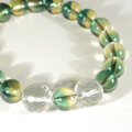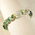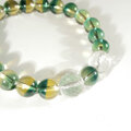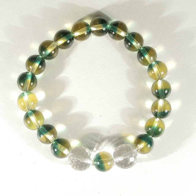 2色に着色された透明感の綺麗な溶錬水晶(練り水晶)のグリーンシトリンクォーツと、ミラーボールの様な128面カットの透明感の高い本水晶(天然水晶、天然石)のブレスレットです。