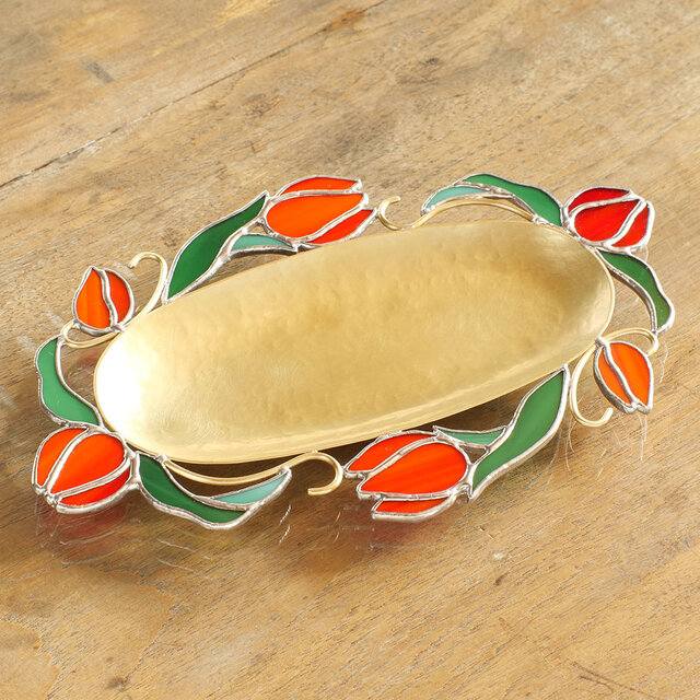 チューリップの真鍮製トレイ ステンドグラス 小物入れ