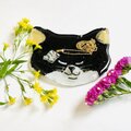 白黒の猫のガラス皿です。目をつむりニンマリしています。