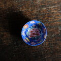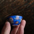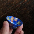 青に花尽くし◆中国景徳鎮 花文色絵小ぶり猪口 茶杯 シノワズリ チャイナレトロ【ホツ有り】A