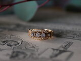 メインには約1カラットのダイヤモンドが3石並べられ、その周りをシードパールがぐるりと可愛らしくセットされています。