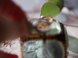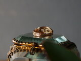 ダイヤモンドは3石ともオールドマイン(クッションシェイプ)カットになっており、クラウンに厚みがあります。先端のキューレットがテーブル面からも見てとれます。