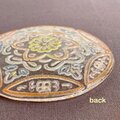 一つ一つの模様を石膏に彫り、色ガラスをその溝に入れてその上に透明のガラスを乗せて電気炉で焼いて作ります。その後研磨加工してやっと完成です。