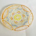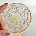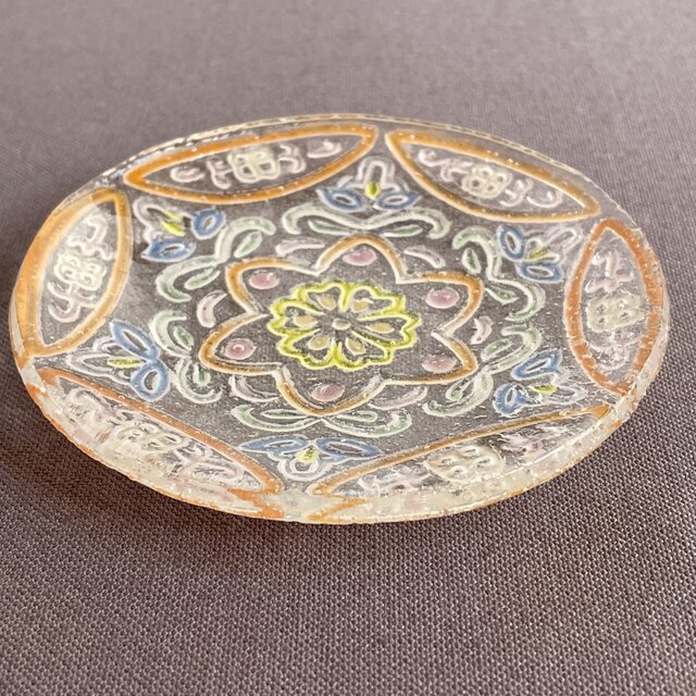 どのお皿もとても素敵で、クッキーなど載せてマッタリお茶会をしたくなりました。ソーダガラスの様に泡が入っていて立体的な模様が彫られているのがレトロ可愛くとても気に入っています。 ありがとうございました。