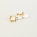 クラシックな装いにもオフィススタイルにもマッチするベーシックながら繊細な動きのあるフープピアスです。薄黄色のモッコウバラがのびやかに波打ちながら蔓を伸ばしている様子が正面はもちろん横顔も立体的に彩ります。