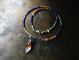 葉っぱの様なカレンシルバーとカーネリアン、ターコイズ、ハーキマーダイヤモンド、小さなラピスの華奢なネックレス