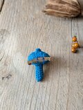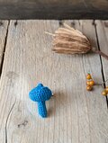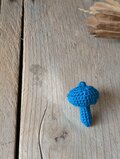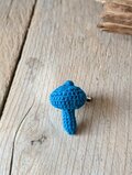 ブルーカラーのレース糸で編んだキノコのブローチです。
