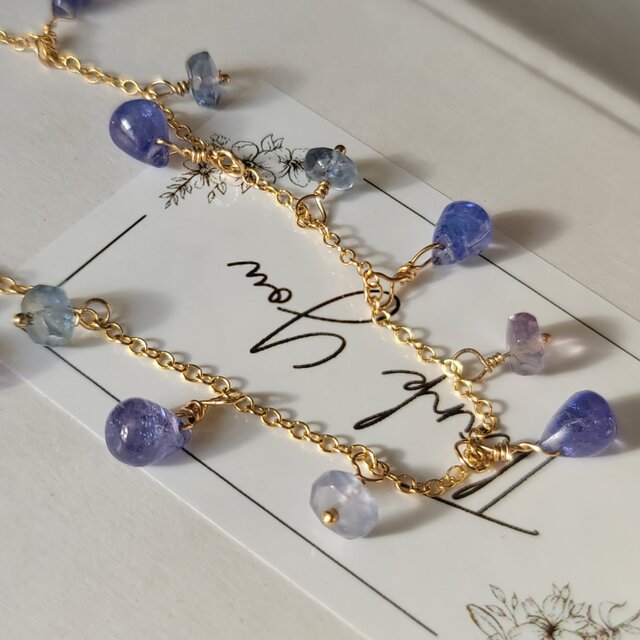 神秘的な輝きが美しい石 タンザナイトを贅沢に繋いだブレスレット/14kgf