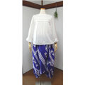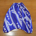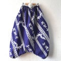 元大相撲力士旭鷲山の浴衣反物に出会い、シンプルだけど個性的、ラフなゆるさが癖になるサルエルパンツに仕立てました。