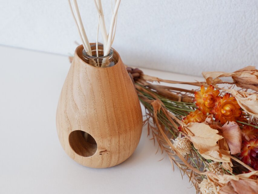 小さな花のつぼみのような形をしたリードディフューザーです。