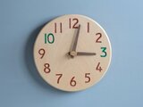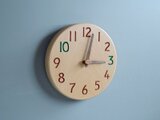3時と10時がグリーン色、他は茶色のおやつ時計です。