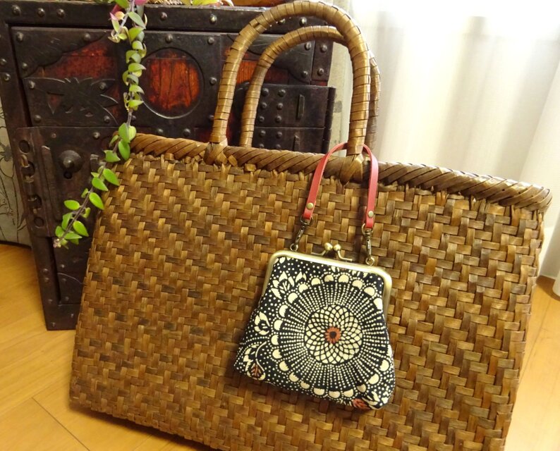 持ち手は取り外しができるのでバッグに付けることも可能です。内袋は薄手の黒木綿。