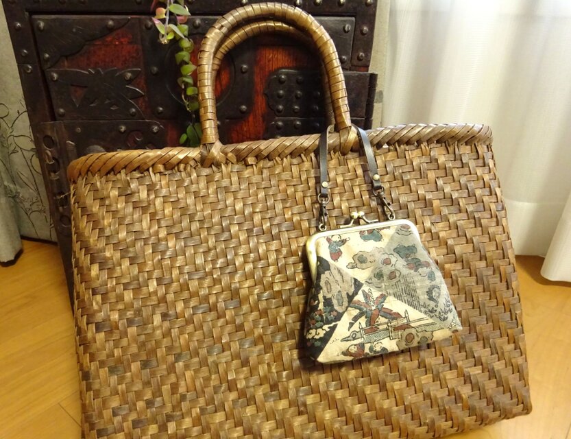 持ち手は取り外しができるのでバッグに付けることも可能です。内袋は薄手の黒木綿。