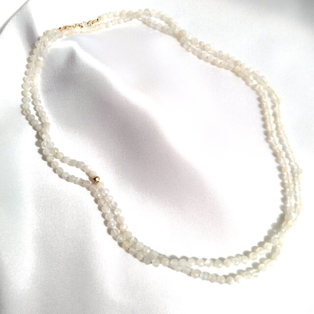 透明感ある乳白色が美しいホワイトムーンストーンのロングネックレス。