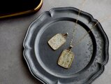 チェーンネックレスはゴールドフィルド製14KGFで、肌に馴染みのよい色味です。長さの変更やアジャスターの追加はオプション機能で無料でオーダーできます。