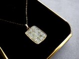 細やかな彫が美しい、花柄のマザーオブパールを18金フレームで加工した、ペンダントネックレス。