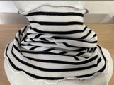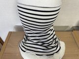 伸縮性がある為、頭からすっぽりかぶり通すタイプです。