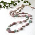 春になると着けたくなる、桜色のクンツァイトたっぷりのロングネックレスです。