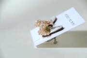 花びらには桜色の中に銀色が透ける、印象的なビーズを使用しております。中に通っている糸は細くてしなやかなビーズ刺繍糸です。触ると溶けてしまいそうな柔らかさですが、簡単には切れない丈夫さも持ち合わせています。本物の花びらを触ったような儚い感触を楽しんでいただければ幸いです(優しく触ってくださいね)。