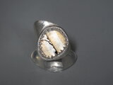 リングのサイズは12号、重さは20g、最大幅は25mm、金属部分は純銀です。