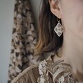 草花が流れるように描かれた、バリ島の伝統的な模様をモチーフにした刺繍ピアス。優しいニュアンスカラーに落とし込みました。