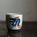 青い龍(辰)◆九谷焼 色絵金彩猪口 昭和レトロ 干支 酒器 コレクション 古民家 古道具 i3