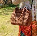 かごバッグ 竹 ヴィンテージバンブーバッグ 夏清横折り竹袋