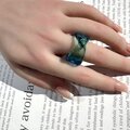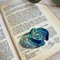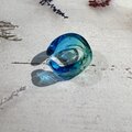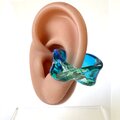 煌めくリボンのデザインが魅力のガラスカフリングは、その美しいエメラルドブルーとブルーの色合いで指元を華やかに彩ります。手作りならではの特別感があり、一つひとつ異なる輝きを楽しめる、あなただけのオリジナルアクセサリーです。