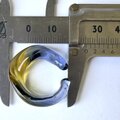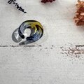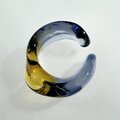 煌めくリボンのデザインが魅力のガラスカフリングは、その美しいイエローとブルーの色合いで指元を華やかに彩ります。手作りならではの特別感があり、一つひとつ異なる輝きを楽しめる、あなただけのオリジナルアクセサリーです。