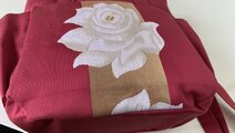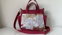 白い薔薇の名古屋帯から作りました。