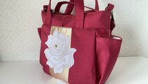 上品な作品です。 きわめて軽く、かつしっかりした作りです。収納力があるので、和装のサブバックとしても、洋装のメインバッグとしても使えそうです。 とても気に入りました。素敵な作品をありがとうございます。 個人的に、紫系の帯バッグや、帯ベルト(写真参考)を、お時間が許せばお作り頂けると嬉しいです。勝手申しましてすいません。