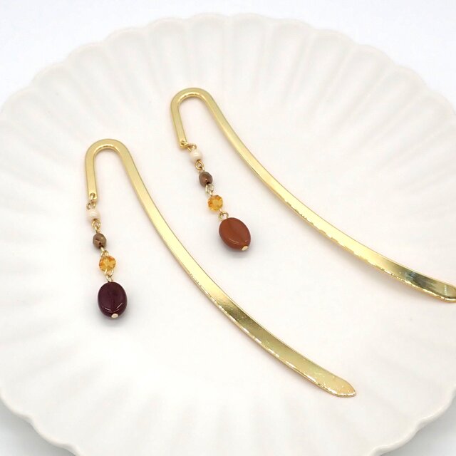 珈琲豆の形のチェコビーズがゆらゆら揺れる大人可愛いブックマーカーです。