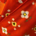 【リメイク着物 ミニミディ ワンピース アンサンブル 帯サッシュベルト付き 和洋折衷 ハンドメイド レトロ 古着 燃えるような朱赤に、織りの風合いが際立つレトロモダンな意匠。 aKW-85】