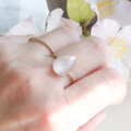 桜の花びらの指輪 フリーリング フリーサイズ 天然石 ピンクシェル+クリスタル アレルギー対応 --Sakura--