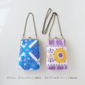 ■ヴィンテージファブリックのがま口スマホショルダーポーチ・Mサイズ / パープルに黄色の花 ■ bateau (vf-pybc)