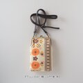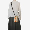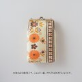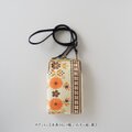 ■ヴィンテージファブリックのがま口スマホショルダーポーチ・Mサイズ / ベージュにオレンジブラウンの花 ■ bateau