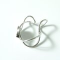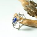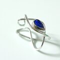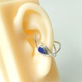 銀線をネジって制作したパーツに深みのある色合いのラピスを留め、ラインの綺麗なイヤーカフに仕上げました。