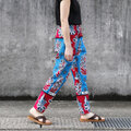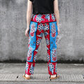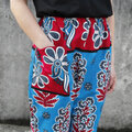 カンガのジョッパーズパンツ( フラワー ブルー × ルビーレッド )アフリカ布パンツ カンガパンツ