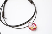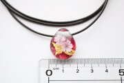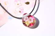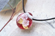 金箔を貼り付けた金赤の地に、桜を咲かせた小さなペンダントです。