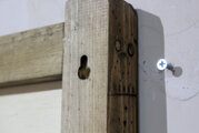背面上部裏面にはキーホールの穴を彫っていますので壁側にLカンやビスや釘等を打ち付けて壁掛けにできます。壁掛け時計と同じ仕様です。