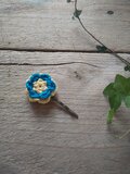 ブルーカラー×イエローカラーのレース糸で編んで制作した、お花のヘアピンです。